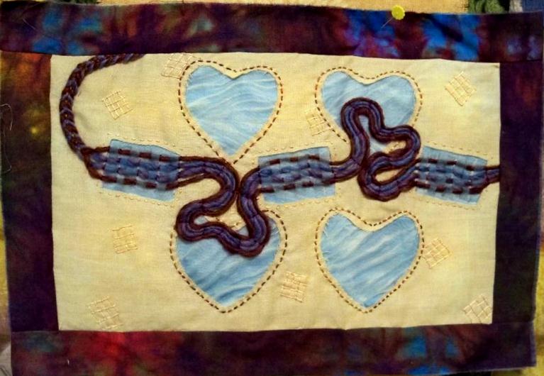 | some 'beating hearts'. a cotton sandwich with silk shibori in between |